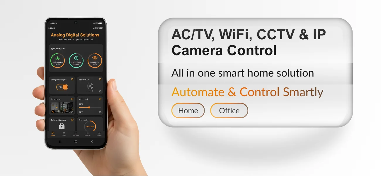 Living room full of remotes and phone apps? We connect your AC, TV and smart speakers into one clean control. Change channels, temperature and inputs together, without hunting for buttons.